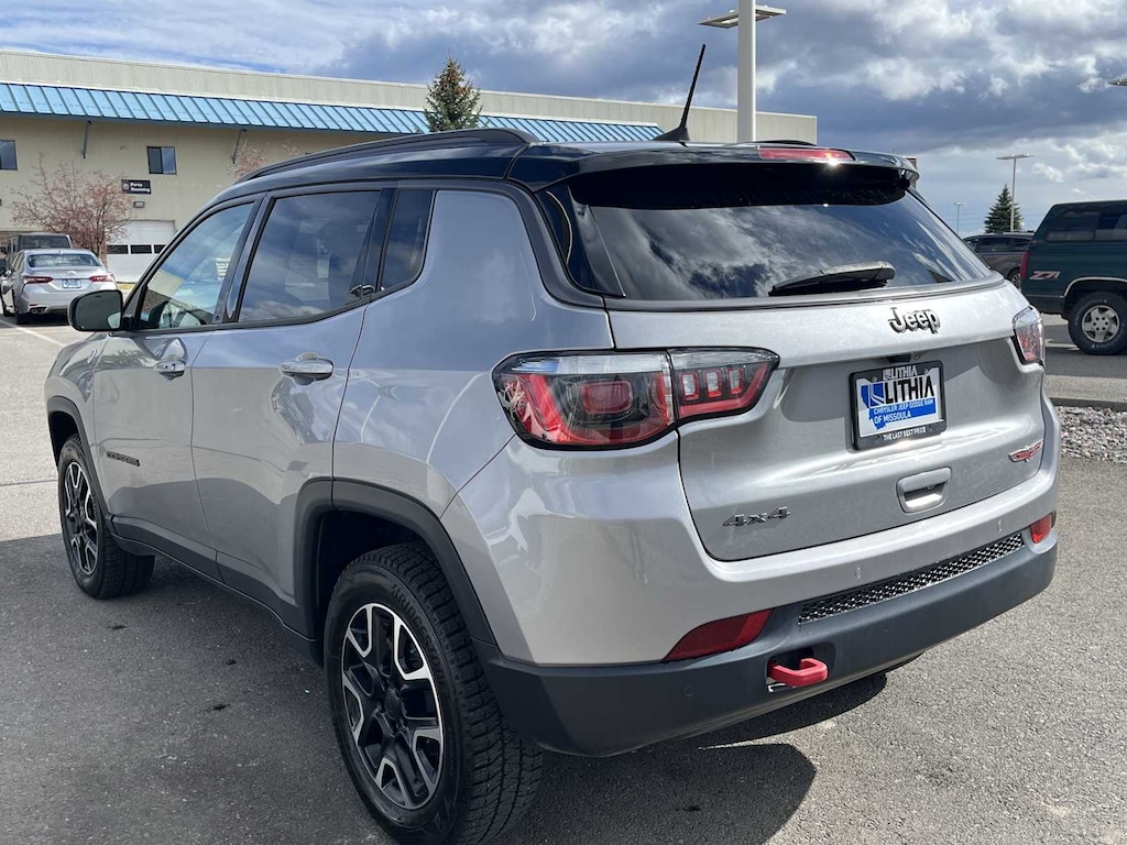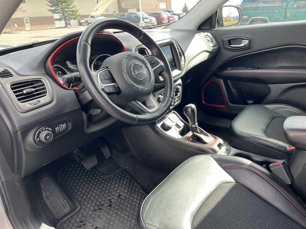 RADIO: UCONNECT 4C NAV W/8.4 DISPLAY SiriusXM Traffic Plus, HD Radio, Media Hub (USB, AUX), Bluetooth® Integrated Voice Command, Bluetooth® Streaming Audio, 1-Year SiriusXM Guardian Trial, GPS Navigation, SiriusXM Travel Link, 8.4 Touch Screen Display, Apple CarPlay®, COLD WEATHER GROUP Heated Steering Wheel, Remote Start System, Windshield Wiper De-Icer, Heated Front Seats, SAFETY & SECURITY GROUP ParkSense Rear Park Assist System, Security Alarm, Blind Spot & Cross Path Detection, Rain Sensitive/Intermittent Wipers, POWER LIFTGATE, TRANSMISSION: 9-SPEED 9HP48 AUTOMATIC, ENGINE: 2.4L I4 ZERO EVAP M-AIR W/ESS (STD). Jeep Trailhawk with Billet Silver Metallic Clearcoat exterior and Ruby Red/Black interior features a 4 Cylinder Engine with 180 HP at 6400 RPM*.