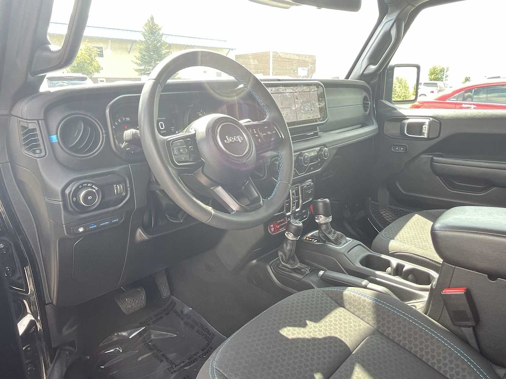 BLACK 3-PIECE HARD TOP Freedom Panel Storage Bag, Rear Window Defroster, Rear Window Wiper/Washer, No Soft Top, ENGINE: 2.0L I4 DOHC DI TURBO PHEV (STD), TRANSMISSION: 8-SPEED AUTO 8P75PH PHEV (STD). Jeep Rubicon with Black Clearcoat exterior and Black interior features a 4 Cylinder Engine with 375 HP at 5250 RPM*.