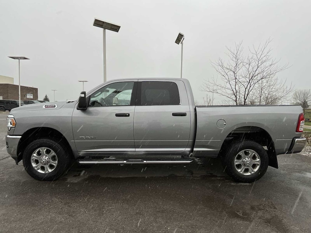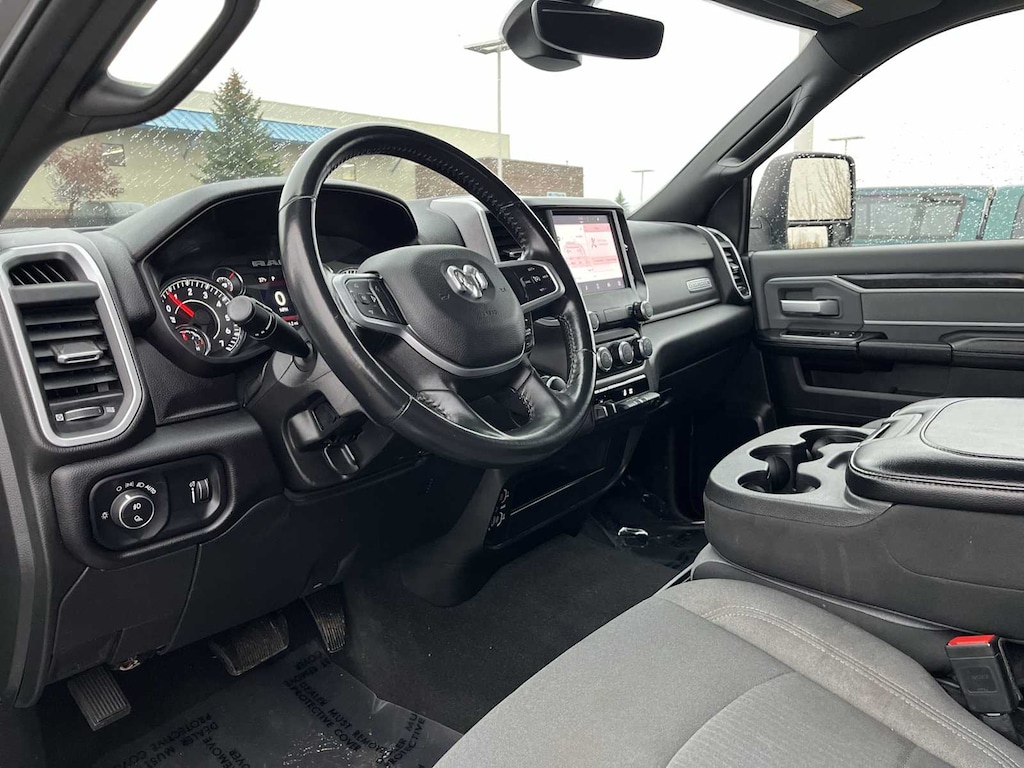 LEVEL 1 EQUIPMENT GROUP Google Android Auto®, For Details, Visit DriveUconnect.com, For More Info, Call 800-643-2112, Leather Wrapped Steering Wheel, Rear Dome w/On/Off Switch Lamp, Front Fog Lamps, Glove Box Lamp, Auto Power-Folding Mirrors, Footwell Courtesy Lamp, 4G LTE Wi-Fi Hot Spot, Mirror Running Lights, Radio: Uconnect 5 W w/8.4 Display, 8.4 Touchscreen Display, Foam Bottle Insert (Door Trim Panel), Apple CarPlay®, Big Horn IP Badge, Power Adjustable Convex Aux Mirrors, Forward & Reverse Utility Lights, Locking Lower Glove Box, Selectable Tire Fill Alert, SiriusXM Satellite Radio, Power Heated Fold Telescope Mirrors, Exterior Mirrors w/Supplemental Signals, Steering Wheel Mounted Audio Controls, Exterior Mirrors Courtesy Lamps, Dual Glove Boxes, 2nd Row In Floor Storage Bins, Power, CHROME FLAT CAB-LENGTH SIDE STEPS, TRANSMISSION: 8-SPEED AUTO (8HP75-LCV) (STD), ENGINE: 6.4L V8 HEAVY DUTY HEMI MDS (STD), DIESEL GRAY/BLACK, PREMIUM CLOTH 40/20/40 BENCH SEAT Front Armrest w/Cupholders, Front Center Seat Cushion Storage, Manual Adjust 4-Way Front Passenger Seat, Storage Tray, Power Adjust 8-Way Driver Seat, Rear 60/40 Folding Seat, Front Seat Back Map Pockets, Power 2-Way Driver Lumbar Adjust. Ram Big Horn with Billet Silver Metallic Clearcoat exterior and Diesel Gray/Black interior features a 8 Cylinder Engine with 410 HP at 5600 RPM*.