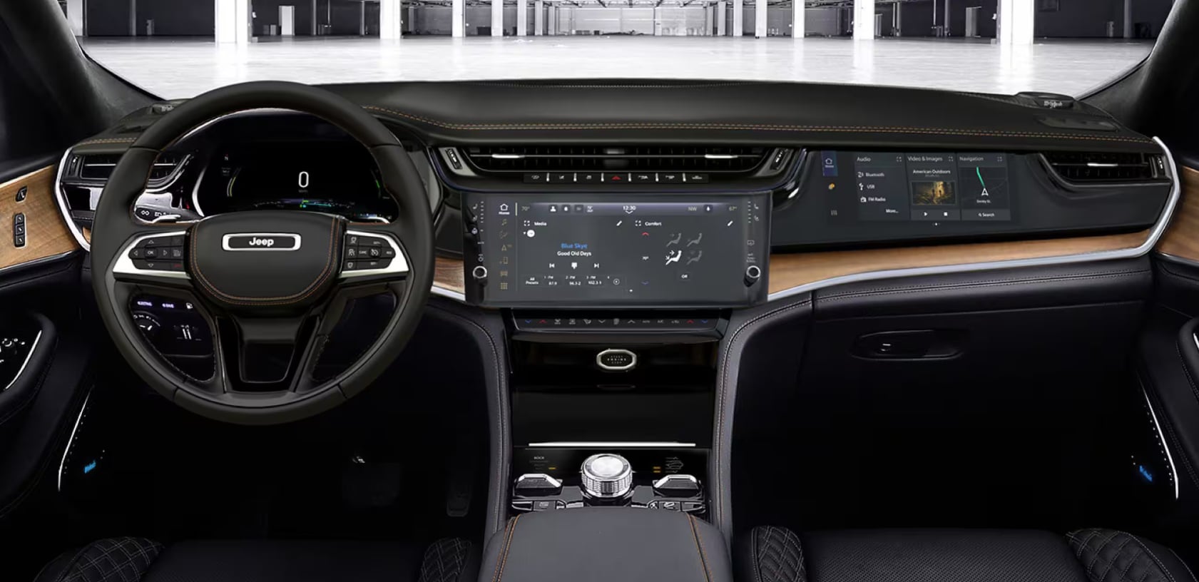 Inside the Grand Cherokee, you'll discover a meticulously crafted cabin featuring premium touchpoints and advanced technologies. It prioritizes both driver and passenger comfort with ergonomic seating positions, intuitive controls, and abundant space for people and cargo, no matter where you're headed in Hamilton or Kalispell.
