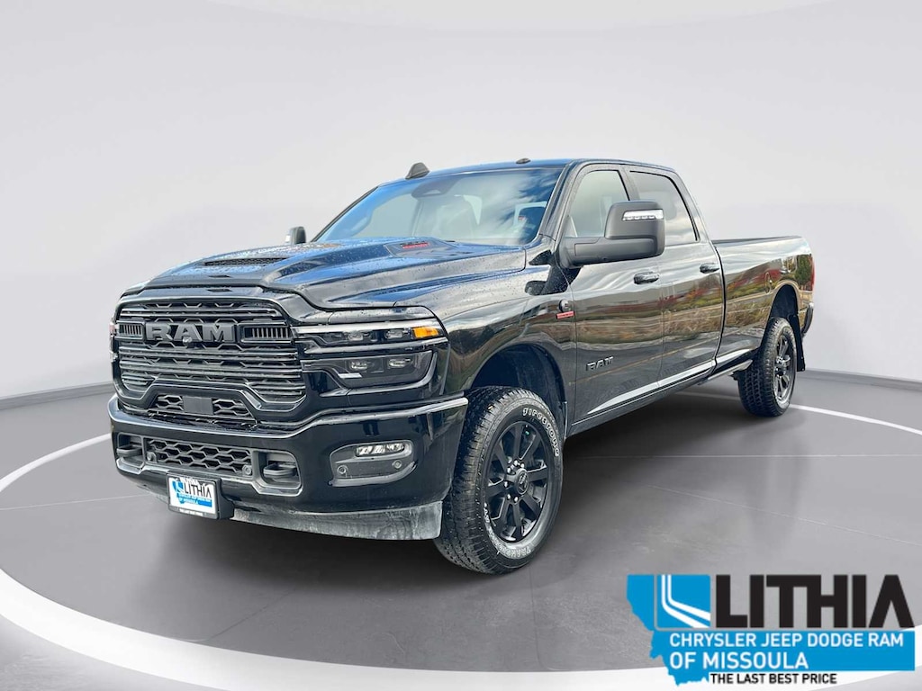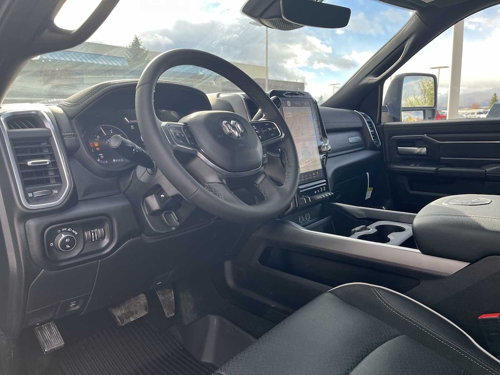 ENGINE: 6.7L I6 CUMMINS HO TURBO DIESEL Selective Catalytic Reduction (Urea), Dual 730 Amp Maintenance Free Batteries, Cummins Turbo Diesel Badge, Heavy Duty Engine Cooling, Diesel Exhaust Brake, Supplemental Heater, 3.42 Axle Ratio, Front Bumper Sight Shields, Capless Fuel Fill w/o Discriminator, GVWR: 10,190 lbs, NIGHT EDITION Tires: LT285/60R20E OWL On/Off Road, Black Exterior Truck Badging, Wheels: 20 x 8.0 Black Painted Aluminum, Gloss Black Grille Billets/Accents, Body Color Grille Surround, Sport Performance Hood, Black Exterior Mirrors, LARAMIE LEVEL 1 PLUS EQUIPMENT GROUP CTR Stop Lamp w/Cargo View Camera, Rain Sensitive Windshield Wipers, Power Adjustable Pedals w/Memory, LED Bed Lighting, Traffic Sign Recognition, Auto Power-Folding Mirrors, Adaptive Steering System, Auto Dim Exterior Mirror, Anti-Spin Differential Rear Axle, Drowsy Driver Detection, MOPAR Deployable Bed Step, Foam Bottle Insert (Door Trim Panel), Active Lane Management System, Power Heated Fold Telescopic Mirrors w/Memory, Remote Tailgate Release, MOPAR Spray In Bedliner, Auto High Beam Headlamp Control, Chrome Exterior Mirrors, Exterior Mirrors w/Memory, 2nd Row In Floor Storage Bins, Auto Dim Exterior Passenger Mirror, Auto Adjust In Reverse Exterior Mirrors, POWER SUNROOF, MOPAR FRONT & REAR RUBBER FLOOR MATS, TRANSMISSION: 8-SPEED TORQUEFLITE HD AUTOMATIC, BLACK, LEATHER TRIMMED BUCKET SEATS Bucket Seats, Dual Wireless Charging Pad, #1 Seat Foam Cushion, Full Length Upgraded Floor Console. Ram Laramie with Diamond Black Crystal Pearlcoat exterior and Black interior features a Straight 6 Cylinder Engine with 430 HP at 2800 RPM*. Approx. Original Base Sticker Price: $86,000*.