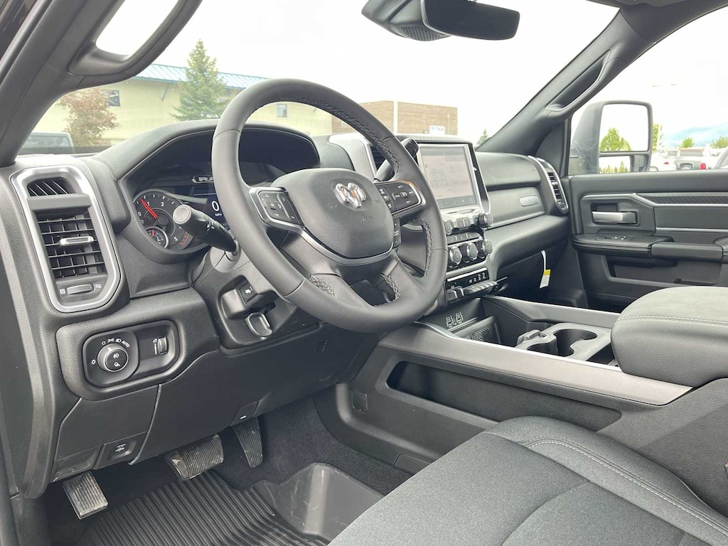 ENGINE: 6.7L I6 CUMMINS TURBO DIESEL Selective Catalytic Reduction (Urea), Dual 730 Amp Maintenance Free Batteries, Cummins Turbo Diesel Badge, Heavy Duty Engine Cooling, Diesel Exhaust Brake, Supplemental Heater, 3.42 Axle Ratio, Front Bumper Sight Shields, Capless Fuel Fill w/o Discriminator, GVWR: 10,190 lbs, BED UTILITY GROUP MOPAR Spray In Bedliner, LED Bed Lighting, MOPAR Deployable Bed Step, BLACK, PREMIUM CLOTH BUCKET SEATS Bucket Seats, Power Adjust 8-Way Driver Seat, Folding Flat Load Floor Storage, Rear 60/40 Folding Seat, Front Seat Back Map Pockets, Power 2-Way Driver Lumbar Adjust, Full Length Upgraded Floor Console, MOPAR FRONT & REAR RUBBER FLOOR MATS, TRANSMISSION: AUTOMATIC, BIG HORN LEVEL 2 EQUIPMENT GROUP Blind Spot & Cross Path Detection, LED Tail Lamps, Red Tail Lamp Bezels, Rear View Auto Dim Mirror, Power Adjustable Pedals, Rear Power Sliding Window, Rear Dome w/On/Off Switch Lamp, Glove Box Lamp, Auto Power-Folding Mirrors, Footwell Courtesy Lamp, 115V Auxiliary Rear Power Outlet, Media Hub w/2 Charge Only USBs, Anti-Spin Differential Rear Axle, Heated Front Seats, Heated Steering Wheel, Foam Bottle Insert (Door Trim Panel), Exterior 115V AC Outlet, Dampened Tailgate, Big Horn IP Badge, Forward & Reverse Utility Lights, Locking Lower Glove Box, Remote Start System, 400W Inverter, 9 Alpine Speakers w/Subwoofer, Power Heated Folding Telescopic Mirrors, Dual Wireless Charging Pad, Steering Wheel Mounted Audio Controls