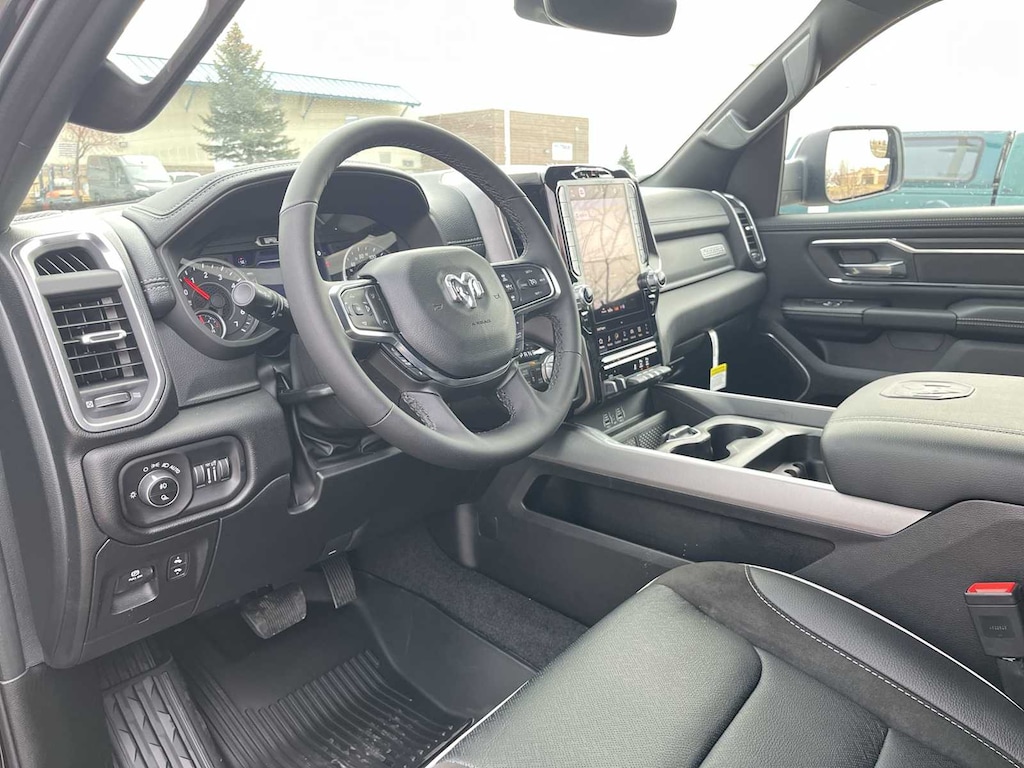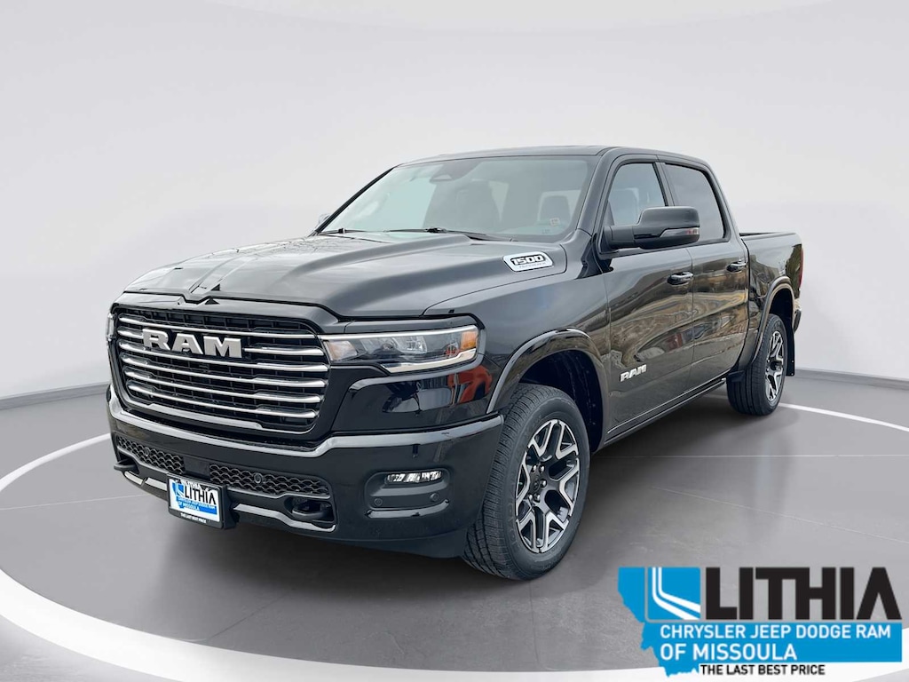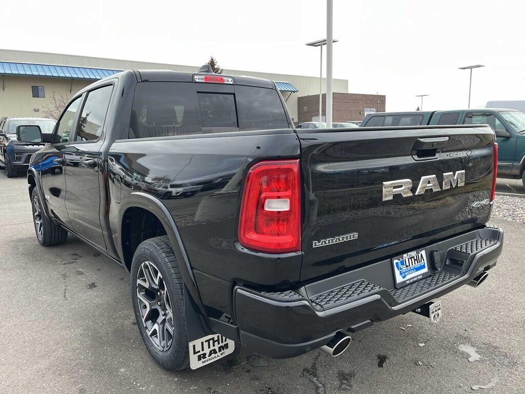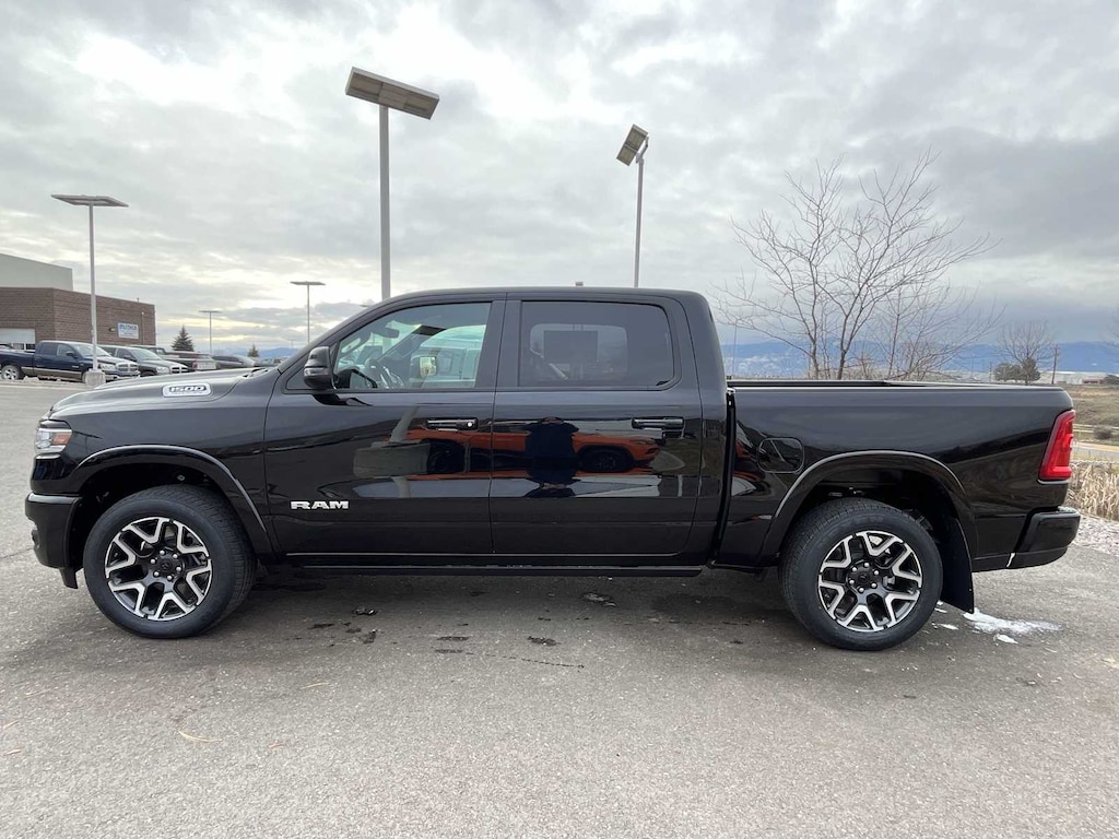 LARAMIE PREFERRED PACKAGE Accent Color Premium Power Mirrors, Power Deployable Running Boards, Grille Surround 3 Body Color Tex 4 Chrome, Trailer Brake Control, Tow Hooks, Body Color Front Bumper, Dual-Pane Panoramic Sunroof, LED Dome/Reading Lamp, Dome Dual LED Reading Lamp, Body Color Rear Bumper w/Step Pads, Black Painted Exterior Mirrors Caps, LARAMIE LEVEL 1 EQUIPMENT GROUP Remote Tailgate Release, Rain Sensitive Windshield Wipers, MOPAR FRONT & REAR RUBBER FLOOR MATS, TRANSMISSION: 8-SPEED AUTOMATIC (8HP75) (STD), ENGINE: 3.0L I6 HURRICANE SO TWIN TURBO ESS (STD). Ram Laramie with Diamond Black Crystal Pearlcoat exterior and Black interior features a Straight 6 Cylinder Engine with 420 HP at 5200 RPM*.