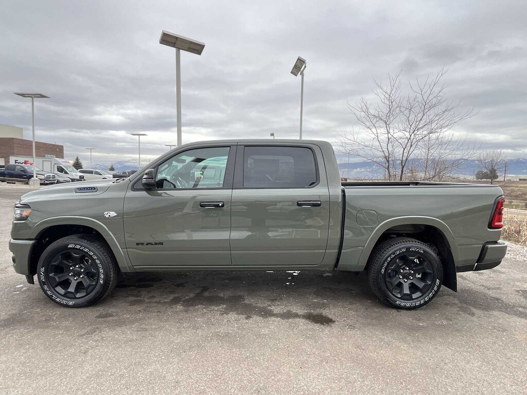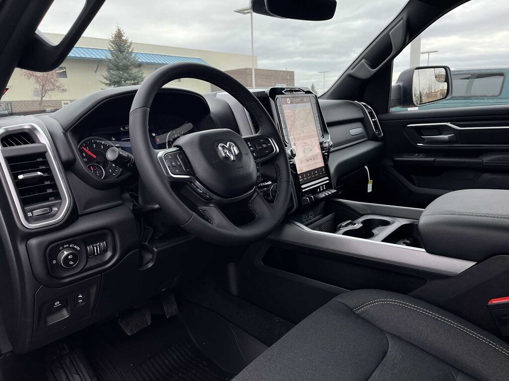 ENGINE: 5.7L V8 HEMI MDS VVT ETORQUE Active Noise Control System, Heavy Duty Engine Cooling, Passive Tuned Mass Damper, GVWR: 7,100 lbs, Dual Rear Exhaust w/Bright Tips, G/T Exhaust, 18 Aluminum Spare Wheel, BIG HORN LEVEL 2 EQUIPMENT GROUP SiriusXM Radio Service, Power Adjustable Pedals, Leather Wrapped Steering Wheel, 12 Touchscreen Display, Glove Box Lamp, Auto Power-Folding Mirrors, 115V Auxiliary Rear Power Outlet, Media Hub w/2 Charge Only USBs, Heated Front Seats, Security Alarm, Black Premium Power Mirrors, Premium Overhead Console, 9 Amplified Speakers w/Subwoofer, Disassociated Touchscreen Display, Body Color Fender Flares, Remote Tailgate Release, 115V Auxiliary Power Outlet, LED Dome Lamp w/On/Off Switch, Universal Garage Door Opener, 2nd Row In Floor Storage Bins, Sun Visors w/Illuminated Vanity Mirrors, LED Footwell Lighting, Rear Window Defroster, Rear View Auto Dim Mirror, Rear Power Sliding Window, GPS Navigation, Overhead LED Lamps, Wheels: 20 x 9 Aluminum Chrome Clad, NIGHT EDITION Tires: 275/55R20 OWL All Season, Bridgestone Brand Tires, Accent Color Premium Power Mirrors, Exterior Mirrors w/Supplemental Signals, Black Headlamp Bezels, Exterior Mirrors Courtesy Lamps, Grille Black Surround Black Mesh, Auto Power-Folding Mirrors, Wheels: 20 x 9.0 Aluminum Painted Clad, Auto Dim Exterior Driver Mirror, Black Exterior Truck Badging, Anti-Spin Differential Rear Axle, Accent Color Door Handles, Accent Color Tailgate Handle, Black Interior Accents, Dual Exhaust w/Black Tips, Body Color Front Bumper, Body Color Rear Bumper w/Step Pads, Black Tail Lamp Bezels, RAM Grille Badge - Black, Black Painted Exterior Mirrors Caps, MOPAR FRONT & REAR RUBBER FLOOR MATS, TRANSMISSION: 8-SPEED AUTOMATIC (8HP75). Ram Big Horn with Canyon Lake exterior and Black interior features a 8 Cylinder Engine with 395 HP at 5600 RPM*.
