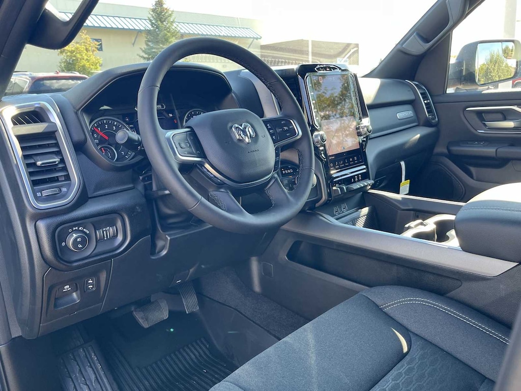 ENGINE: 5.7L V8 HEMI MDS VVT ETORQUE Active Noise Control System, Heavy Duty Engine Cooling, Passive Tuned Mass Damper, GVWR: 7,100 lbs, Dual Rear Exhaust w/Bright Tips, G/T Exhaust, 18 Aluminum Spare Wheel, 33 Gallon Fuel Tank, BIG HORN LEVEL 2 EQUIPMENT GROUP SiriusXM Radio Service, Power Adjustable Pedals, Leather Wrapped Steering Wheel, 12 Touchscreen Display, Glove Box Lamp, Auto Power-Folding Mirrors, 115V Auxiliary Rear Power Outlet, Media Hub w/2 Charge Only USBs, Heated Front Seats, Security Alarm, Black Premium Power Mirrors, Premium Overhead Console, 9 Amplified Speakers w/Subwoofer, Disassociated Touchscreen Display, Secondary Active Grille Shutters, Wireless Charging Pad, Body Color Fender Flares, Remote Tailgate Release, 115V Auxiliary Power Outlet, LED Dome Lamp w/On/Off Switch, Universal Garage Door Opener, 2nd Row In Floor Storage Bins, Sun Visors w/Illuminated Vanity Mirrors, LED Footwell Lighting, Rear Window Defroster, Rear View Auto Dim Mirror, Rear Power Sliding Window, GPS Navigation, NIGHT EDITION Tires: 275/55R20 OWL All Season, Bridgestone Brand Tires, Accent Color Premium Power Mirrors, Exterior Mirrors w/Supplemental Signals, Black Headlamp Bezels, Exterior Mirrors Courtesy Lamps, Grille Black Surround Black Mesh, Auto Power-Folding Mirrors, Wheels: 20 x 9.0 Aluminum Painted Clad, Auto Dim Exterior Driver Mirror, Black Exterior Truck Badging, Anti-Spin Differential Rear Axle, Accent Color Door Handles, Accent Color Tailgate Handle, Black Interior Accents, Dual Exhaust w/Black Tips, Body Color Front Bumper, Body Color Rear Bumper w/Step Pads, Black Tail Lamp Bezels, RAM Grille Badge - Black, Black Painted Exterior Mirrors Caps, MOPAR FRONT & REAR RUBBER FLOOR MATS, TRANSMISSION: 8-SPEED AUTOMATIC (8HP75). Ram Big Horn with Forged Blue Metallic exterior and Black interior features a 8 Cylinder Engine with 305 HP at 6400 RPM*.
