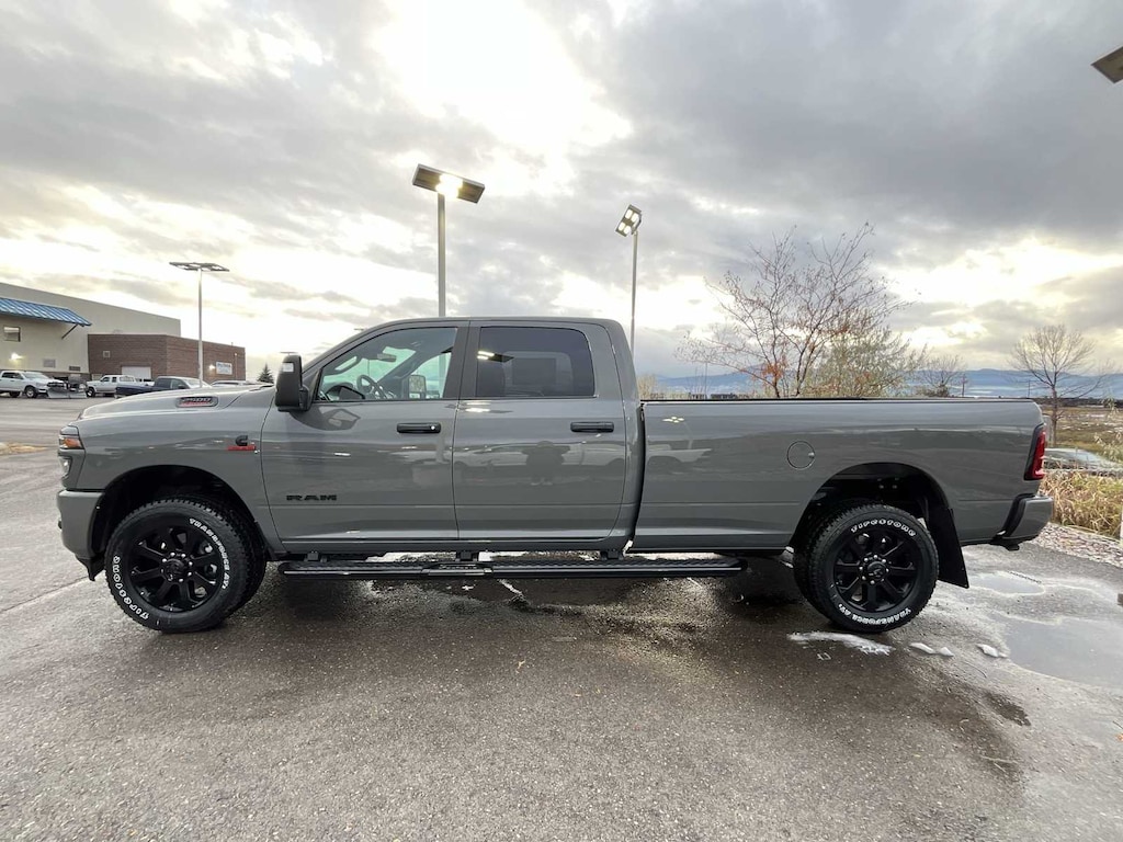 ENGINE: 6.7L I6 CUMMINS HO TURBO DIESEL Selective Catalytic Reduction (Urea), Dual 730 Amp Maintenance Free Batteries, Cummins Turbo Diesel Badge, Heavy Duty Engine Cooling, Diesel Exhaust Brake, Supplemental Heater, 3.42 Axle Ratio, Front Bumper Sight Shields, Capless Fuel Fill w/o Discriminator, GVWR: 11,040 lbs, BIG HORN LEVEL 1 PLUS EQUIPMENT GROUP Emergency Vehicle Alert System (EVAS), 12 Touchscreen Display, Glove Box Lamp, Auto Power-Folding Mirrors, Footwell Courtesy Lamp, Anti-Spin Differential Rear Axle, MOPAR Deployable Bed Step, Alexa Built-In, Forward & Reverse Utility Lights, Locking Lower Glove Box, Remote Start System, 9 Alpine Speakers w/Subwoofer, Disassociated Touchscreen Display, Dual Glove Boxes, 2nd Row In Floor Storage Bins, Rear View Auto Dim Mirror, Rear Dome w/On/Off Switch Lamp, LED Bed Lighting, GPS Navigation, SiriusXM w/360L, Connected Travel & Traffic Services, Foam Bottle Insert (Door Trim Panel), Big Horn IP Badge, Off-Road Info Pages, Trailer Tow Pages, HD Radio, Radio: Uconnect 5 Nav w/12.0 Display, Power Heated Folding Telescopic Mirrors, Steering Wheel Mounted, NIGHT EDITION Gloss Black Nostrils/Mic Black Grille, Tires: LT285/60R20E OWL On/Off Road, Black Exterior Truck Badging, Wheels: 20 x 8.0 Black Painted Aluminum, Body Color Grille-Surround, Black Interior Accents, Black Wheel Center Hub, Painted Front Bumper, Painted Rear Bumper, PAINTED FLAT WHEEL-TO-WHEEL SIDE STEPS, HEATED SEATS & WHEEL GROUP Heated Steering Wheel, Heated Front Seats, BLACK, PREMIUM CLOTH BUCKET SEATS Bucket Seats, Power Adjust 8-Way Driver Seat, Folding Flat Load Floor Storage, Rear 60/40 Folding Seat, Front Seat Back Map Pockets, Power 2-Way Driver Lumbar Adjust, Full Length Upgraded Floor Console, MOPAR FRONT & REAR RUBBER FLOOR MATS, TRANSMISSION: 8-SPEED TORQUEFLITE HD AUTOMATIC. Ram Big Horn with Ceramic Grey Clearcoat exterior and Black interior features a Straight 6 Cylinder Engine with 430 HP at 2800 RPM*. Approx. Original Base Sticker Price: $80,000*.