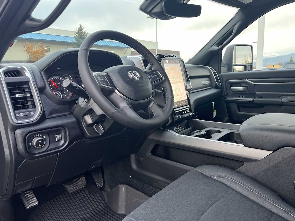 ENGINE: 6.7L I6 CUMMINS HO TURBO DIESEL Selective Catalytic Reduction (Urea), Dual 730 Amp Maintenance Free Batteries, Cummins Turbo Diesel Badge, Heavy Duty Engine Cooling, Diesel Exhaust Brake, Supplemental Heater, 3.42 Axle Ratio, Front Bumper Sight Shields, Capless Fuel Fill w/o Discriminator, GVWR: 11,040 lbs, BIG HORN LEVEL 1 PLUS EQUIPMENT GROUP Emergency Vehicle Alert System (EVAS), 12 Touchscreen Display, Glove Box Lamp, Auto Power-Folding Mirrors, Footwell Courtesy Lamp, Anti-Spin Differential Rear Axle, MOPAR Deployable Bed Step, Alexa Built-In, Forward & Reverse Utility Lights, Locking Lower Glove Box, Remote Start System, 9 Alpine Speakers w/Subwoofer, Disassociated Touchscreen Display, Dual Glove Boxes, 2nd Row In Floor Storage Bins, Rear View Auto Dim Mirror, Rear Dome w/On/Off Switch Lamp, LED Bed Lighting, GPS Navigation, SiriusXM w/360L, Connected Travel & Traffic Services, Foam Bottle Insert (Door Trim Panel), Big Horn IP Badge, Off-Road Info Pages, Trailer Tow Pages, HD Radio, Radio: Uconnect 5 Nav w/12.0 Display, Power Heated Folding Telescopic Mirrors, Steering Wheel Mounted, NIGHT EDITION Gloss Black Nostrils/Mic Black Grille, Tires: LT285/60R20E OWL On/Off Road, Black Exterior Truck Badging, Wheels: 20 x 8.0 Black Painted Aluminum, Body Color Grille-Surround, Black Interior Accents, Black Wheel Center Hub, Painted Front Bumper, Painted Rear Bumper, HEATED SEATS & WHEEL GROUP Heated Steering Wheel, Heated Front Seats, BLACK, PREMIUM CLOTH BUCKET SEATS Bucket Seats, Power Adjust 8-Way Driver Seat, Folding Flat Load Floor Storage, Rear 60/40 Folding Seat, Front Seat Back Map Pockets, Power 2-Way Driver Lumbar Adjust, Full Length Upgraded Floor Console, MOPAR FRONT & REAR RUBBER FLOOR MATS, TRANSMISSION: 8-SPEED TORQUEFLITE HD AUTOMATIC. Ram Big Horn with Ceramic Gray Clearcoat exterior and Black interior features a Straight 6 Cylinder Engine with 430 HP at 2800 RPM*. Approx. Original Base Sticker Price: $77,200*.