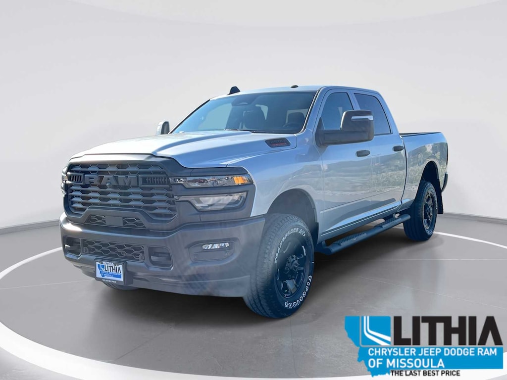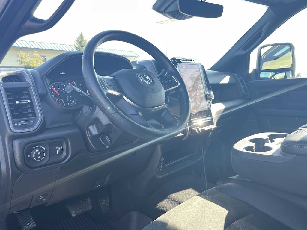 TRADESMAN LEVEL 1 EQUIPMENT GROUP Convenience Group, Emergency Vehicle Alert System (EVAS), 12 Touchscreen Display, Exterior 115V AC Outlet, Alexa Built-In, Disassociated Touchscreen Display, 115V Auxiliary Front Power Outlet, Rear View Auto Dim Mirror, Rear Power Sliding Window, Tinted Acoustic Windshield Glass, GPS Navigation, SiriusXM w/360L, Connected Travel & Traffic Services, Off-Road Info Pages, Trailer Tow Pages, 400W Inverter, HD Radio, Radio: Uconnect 5 Nav w/12.0 Display, Air Conditioning ATC w/Dual Zone Control, MOPAR BLACK TUBULAR SIDE STEPS, ANTI-SPIN DIFFERENTIAL REAR AXLE, WHEELS: 18 X 8.0 BLACK PAINTED STEEL 18 Steel Spare Wheel, Tires: LT275/70R18E BSW AS, MOPAR FRONT & REAR RUBBER FLOOR MATS, TRANSMISSION: 8-SPEED AUTO (8HP75-LCV) (STD), ENGINE: 6.4L V8 HEMI HD (STD), BLACK, CLOTH 40/20/40 BENCH SEAT. Ram Tradesman with Silver Zynith exterior and Black interior features a 8 Cylinder Engine with 405 HP at 5600 RPM*.