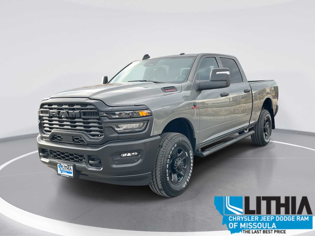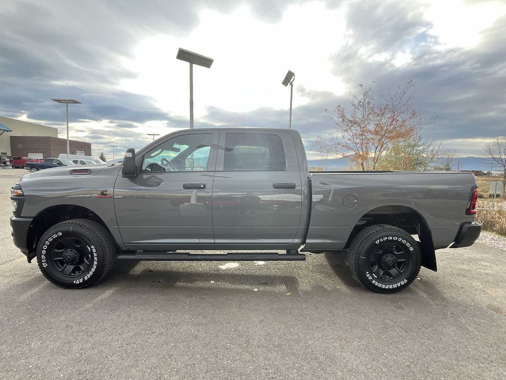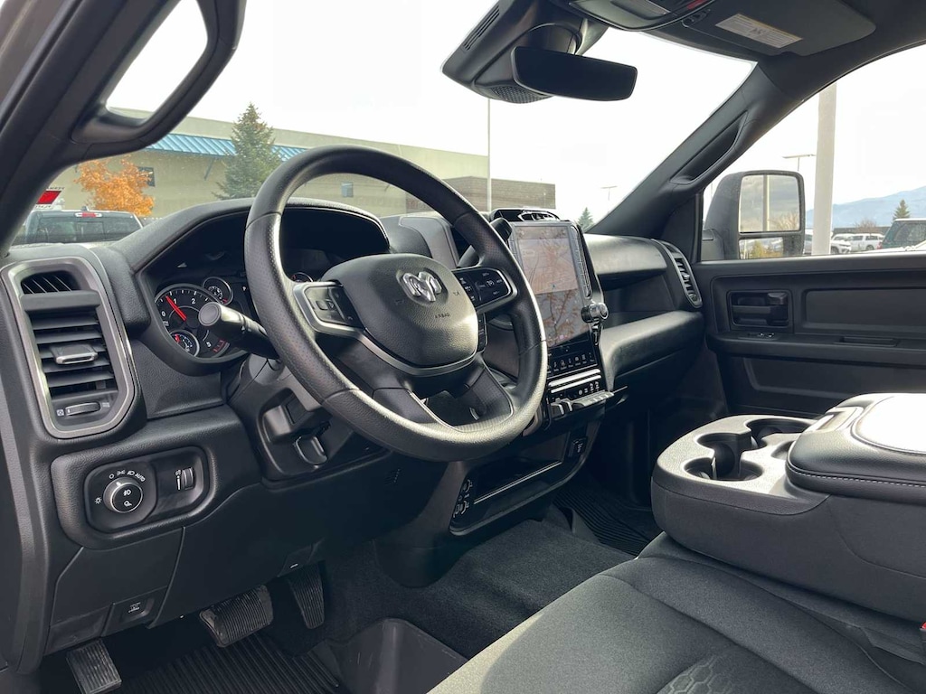 ENGINE: 6.7L I6 CUMMINS HO TURBO DIESEL Selective Catalytic Reduction (Urea), Dual 730 Amp Maintenance Free Batteries, Cummins Turbo Diesel Badge, Heavy Duty Engine Cooling, Diesel Exhaust Brake, Supplemental Heater, 3.42 Axle Ratio, Front Bumper Sight Shields, Capless Fuel Fill w/o Discriminator, GVWR: 11,040 lbs, TRADESMAN LEVEL 1 EQUIPMENT GROUP Convenience Group, Emergency Vehicle Alert System (EVAS), 12 Touchscreen Display, Exterior 115V AC Outlet, Alexa Built-In, Disassociated Touchscreen Display, 115V Auxiliary Front Power Outlet, Rear View Auto Dim Mirror, Rear Power Sliding Window, Tinted Acoustic Windshield Glass, GPS Navigation, SiriusXM w/360L, Connected Travel & Traffic Services, Off-Road Info Pages, Trailer Tow Pages, 400W Inverter, HD Radio, Radio: Uconnect 5 Nav w/12.0 Display, Air Conditioning ATC w/Dual Zone Control, MOPAR BLACK TUBULAR SIDE STEPS, ANTI-SPIN DIFFERENTIAL REAR AXLE, WHEELS: 18 X 8.0 BLACK PAINTED STEEL 18 Steel Spare Wheel, Tires: LT275/70R18E BSW AS, MOPAR FRONT & REAR RUBBER FLOOR MATS, TRANSMISSION: 8-SPEED TORQUEFLITE HD AUTOMATIC, BLACK, CLOTH 40/20/40 BENCH SEAT. Ram Tradesman with Ceramic Grey Clearcoat exterior and Black interior features a Straight 6 Cylinder Engine with 430 HP at 2800 RPM*. Approx. Original Base Sticker Price: $72,000*.