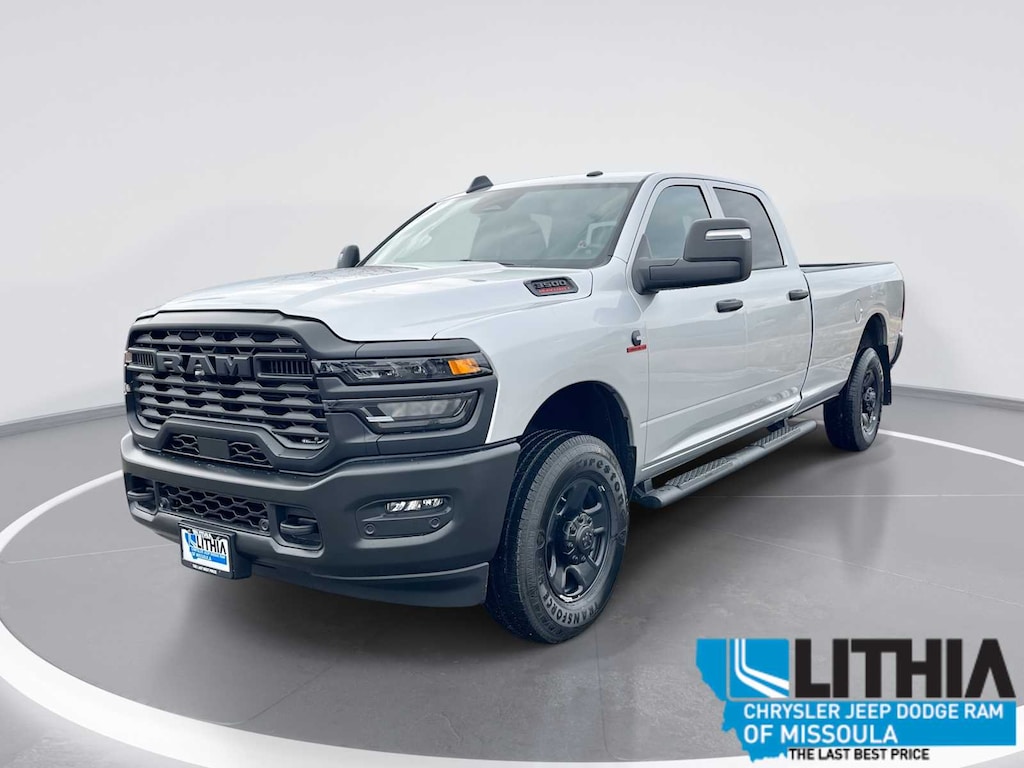 ENGINE: 6.7L I6 CUMMINS HO TURBO DIESEL Selective Catalytic Reduction (Urea), Dual 730 Amp Maintenance Free Batteries, Cummins Turbo Diesel Badge, Heavy Duty Engine Cooling, Current Generation Engine Controller, Diesel Exhaust Brake, Supplemental Heater, 3.42 Axle Ratio, Front Bumper Sight Shields, Capless Fuel Fill w/o Discriminator, TRADESMAN LEVEL 1 EQUIPMENT GROUP Convenience Group, Rear View Auto Dim Mirror, For Details Visit DriveUconnect.com, For More Info, Call 800-643-2112, Rear Power Sliding Window, Emergency Vehicle Alert System (EVAS), 12 Touchscreen Display, Tinted Acoustic Windshield Glass, GPS Navigation, Exterior Mirrors w/Heating Element, MOPAR Black Tubular Side Steps, SiriusXM w/360L, Connected Travel & Traffic Services, Mirror Running Lights, Exterior 115V AC Outlet, Alexa Built-In, Carpet Floor Covering, Power-Adjustable Convex Aux Mirrors, Off-Road Information Pages, Trailer Tow Pages, 400W Inverter, Disassociated Touchscreen Display, HD Radio, Power Heat Fold Telescopic Mirrors, Radio: Uconnect 5 Nav w/12.0 Display, Exterior Mirrors w/Supplemental Signals, Exterior Mirrors Courtesy Lamps, Air, TRANSMISSION: 8-SPEED TORQUEFLITE HD AUTOMATIC, BLACK, CLOTH 40/20/40 BENCH SEAT. Ram Tradesman with Silver Zynith exterior and Black interior features a Straight 6 Cylinder Engine with 430 HP at 2800 RPM*. Approx. Original Base Sticker Price: $74,100*.