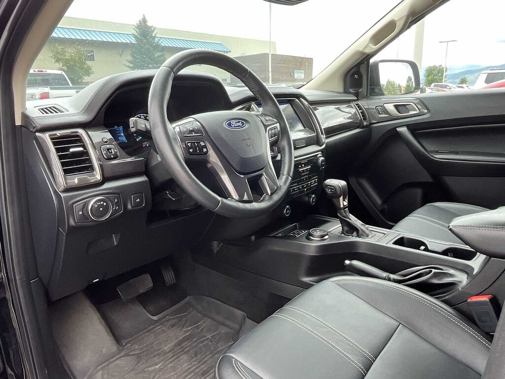 EQUIPMENT GROUP 501A MID Rain-Sensing Wipers, Remote Start, Technology Package, forward sensing system, Adaptive Cruise Control, Navigation, Windshield Wiper De-Icer, Radio: B&O Sound System by Bang & Olufsen, 10 high-performance speakers and HD Radio, FX4 OFF-ROAD PACKAGE exposed steel bash plate and removes front air dam, Terrain Management System, Trail Control, Electronic-Locking Rear Differential, Off-Road Screen in Cluster, Off-Road Tuned Suspension, 4x4 FX4 Off-Road Bodyside Decal, Skid Plates, fuel tank, transfer case and front differential, SPORT APPEARANCE PACKAGE Sport Box Decal, Wheels: 17 Magnetic Painted Aluminum, Black Grille w/Magnetic Surround & Bars, Tires: 17, Exposed Front Tow Hooks, Magnetic Wheel-Lip Molding, 5 RECTANGULAR BLACK RUNNING BOARDS, TRAILER TOW PACKAGE towing capability up to TBD lbs and 4-pin/7-pin wiring harness, Class IV Trailer Hitch Receiver, TRAY STYLE FLOOR LINER, TRANSMISSION: ELECTRONIC 10-SPEED SELECTSHIFT AUTO (STD). Ford LARIAT with Shadow Black exterior and Ebony interior features a 4 Cylinder Engine with 270 HP at 5500 RPM*.