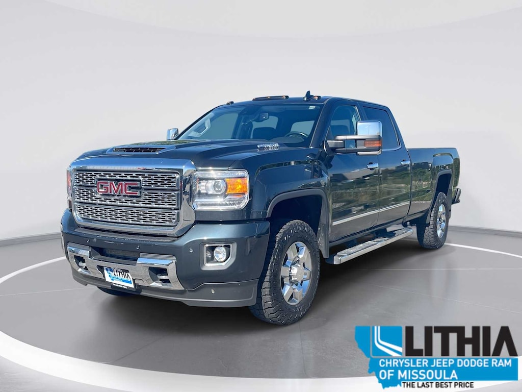 SEATS, FRONT FULL-FEATURE LEATHER-APPOINTED BUCKET WITH (KA1) HEATED SEAT CUSHIONS AND SEAT BACKS. Includes 12-way power driver and front passenger seat adjusters, including 4-way power lumbar control, 2-position driver memory, adjustable head restraints, (D07) floor console and storage pockets and (K4C) wireless charging (STD), AUDIO SYSTEM, 8 DIAGONAL COLOR TOUCH SCREEN NAVIGATION WITH GMC INFOTAINMENT SYSTEM, AM/FM/SIRIUSXM, HD RADIO with USB ports, auxiliary jack, Bluetooth® streaming audio for music and most phones, Pandora Internet radio and voice-activated technology for radio and phone (STD), ENGINE, DURAMAX 6.6L TURBO-DIESEL V8, B20-DIESEL COMPATIBLE (445 hp [332 kW] @ 2800 rpm, 910 lb-ft of torque [1220 Nm] @ 1600 rpm) Includes capped fuel fill, (K40) exhaust brake and (K05) engine block heater. TRANSMISSION, ALLISON 1000 6-SPEED AUTOMATIC, ELECTRONICALLY CONTROLLED with overdrive, electronic engine grade braking and tow/haul mode. GMC Denali with Dark Slate Metallic exterior and Jet Black interior features a 8 Cylinder Engine with 445 HP at 2800 RPM*.