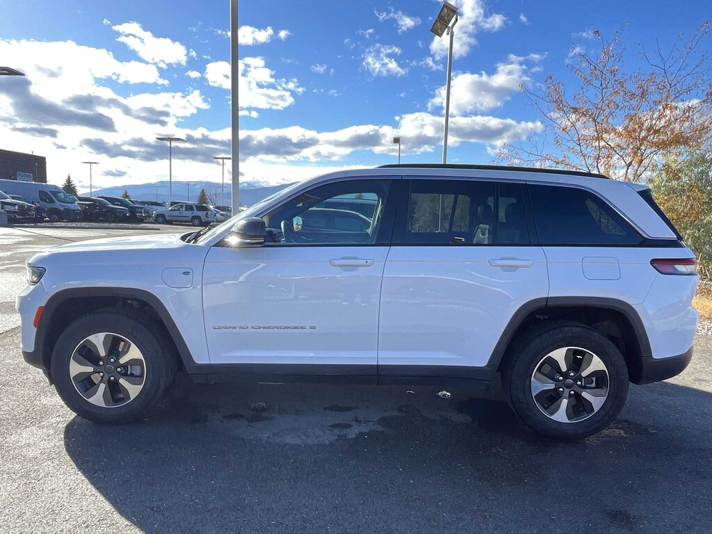 TRANSMISSION: 8-SPEED AUTOMATIC 8P75PH PHEV (STD), ENGINE: 2.0L I4 DOHC DI TURBO PHEV (STD). Jeep Grand Cherokee 4xe with Bright White Clearcoat exterior and Global Black interior features a 4 Cylinder Engine with 375 HP at 5250 RPM*.