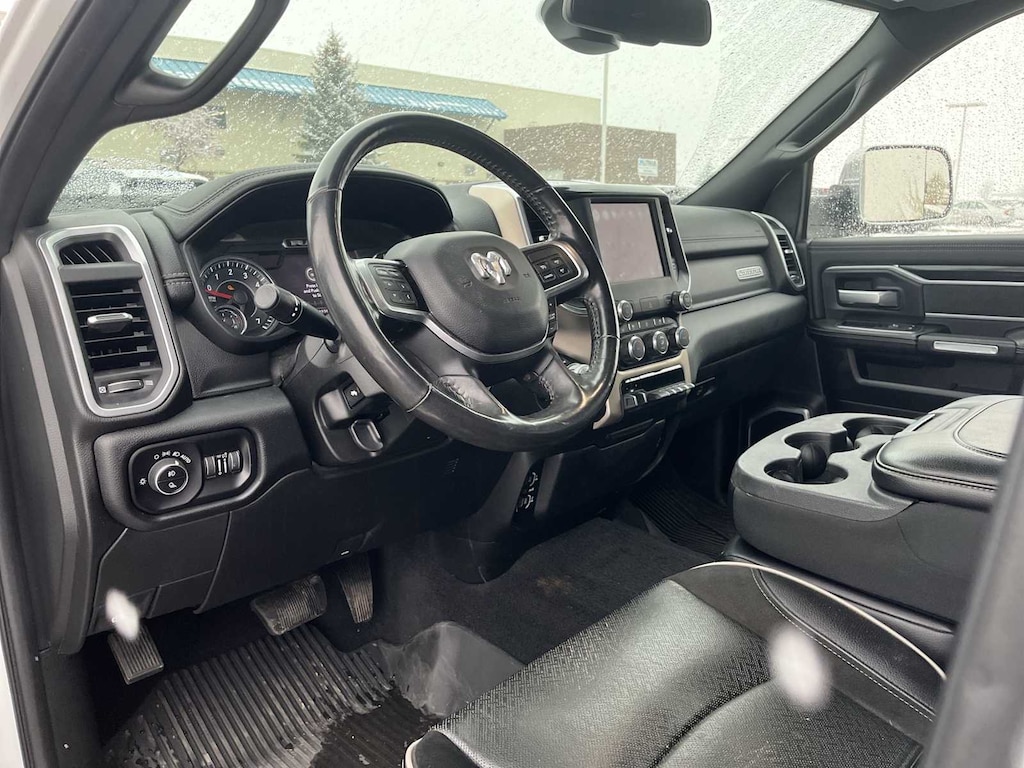LARAMIE LEVEL 1 EQUIPMENT GROUP Remote Tailgate Release, Auto High Beam Headlamp Control, Blind Spot & Cross Path Detection, Rain Sensitive Windshield Wipers, Power Adjustable Pedals w/Memory, Foam Bottle Insert (Door Trim Panel), Single Disc Remote CD Player, 2nd Row In Floor Storage Bins, Radio/Driver Seat/Mirrors/Pedals Memory, Ventilated Front Seats, BLIND SPOT & CROSS PATH DETECTION Power Chrome Tow Mirrors w/Convex Spotter & Memory, Mirror-Mounted Aux Reverse Lamps, Exterior Mirrors w/Memory, Power Adjustable Convex Aux Mirrors, ANTI-SPIN DIFFERENTIAL REAR AXLE, PROTECTION GROUP Transfer Case Skid Plate Shield, Tow Hooks, TRANSMISSION: 8-SPEED AUTO (8HP75-LCV) (STD), ENGINE: 6.4L HEAVY DUTY V8 HEMI W/MDS (STD). Ram Laramie with Bright White Clearcoat exterior and Black interior features a 8 Cylinder Engine with 410 HP at 5600 RPM*.