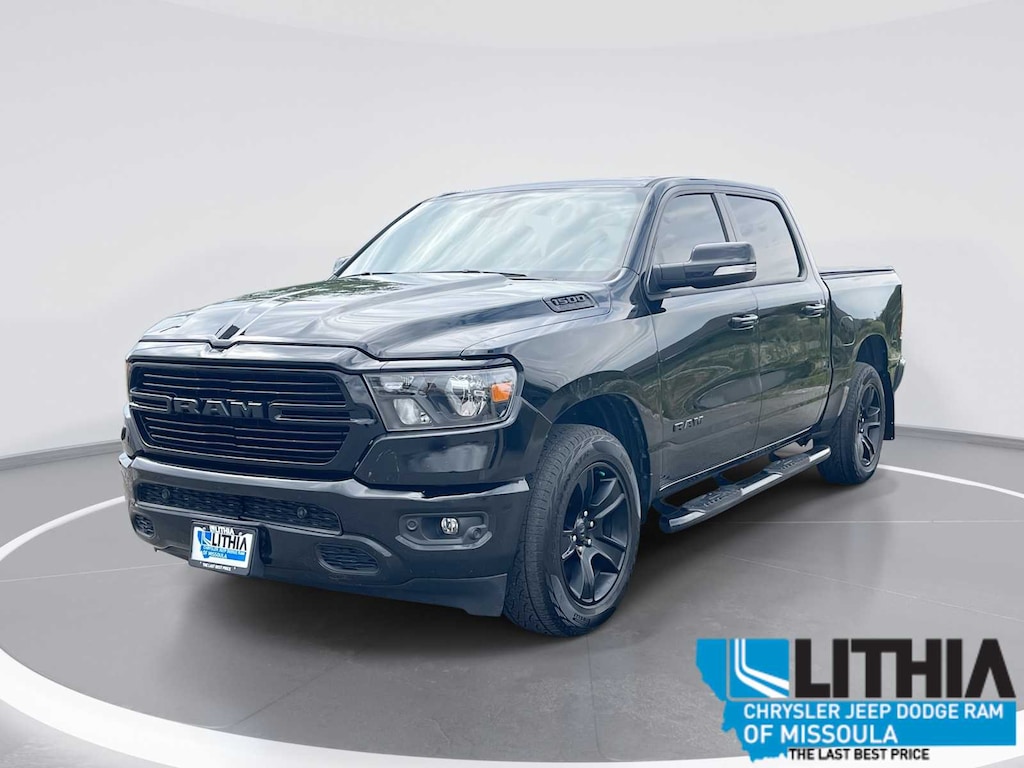 BIG HORN LEVEL 2 EQUIPMENT GROUP Radio: Uconnect 4 w/8.4 Display, Rear Window Defroster, ParkSense Front/Rear Park Assist w/Stop, Rear View Auto Dim Mirror, Power Adjustable Pedals, Rear Power Sliding Window, Rear Dome w/On/Off Switch Lamp, Glove Box Lamp, Power 4-Way Driver Lumbar Adjust, 115V Auxiliary Rear Power Outlet, Power 8-Way Driver Seat, 2 USB Full Function/Charge Only Media Hub, Heated Front Seats, Heated Steering Wheel, Foam Bottle Insert (Door Trim Panel), Class IV Receiver Hitch, Dampened Tailgate, Security Alarm, Black Premium Power Mirrors, Big Horn IP Badge, Remote Start System, SiriusXM Satellite Radio, 400W Inverter, Air Conditioning ATC w/Dual Zone Control, 115V Auxiliary Power Outlet, Universal Garage Door Opener, 2nd Row In Floor Storage Bins, Sun Visors, NIGHT EDITION Tires: 275/55R20 OWL All Season, Black Headlamp Bezels, Body Color Premium Power Mirrors, Body Color Door Handles, Exterior Mirrors Courtesy Lamps, Auto Dim Exterior Driver Mirror, Black Exterior Truck Badging, Anti-Spin Differential Rear Axle, Wheels: 20 x 9.0 Premium Paint/Polished, Exterior Mirrors w/Memory, Grille Surround 1 Black Texture 2 Black, Body Color Exterior Mirrors, Black Interior Accents, Dual Exhaust w/Black Tips, Power-Folding Mirrors, Body Color Front Bumper, Body Color Rear Bumper w/Step Pads, ENGINE: 5.7L V8 HEMI MDS VVT Active Noise Control System, 180 Amp Alternator, Heavy Duty Engine Cooling, GVWR: 7,100 lbs, Dual Rear Exhaust w/Bright Tips, Hemi Badge, REMOTE START SYSTEM, TRANSMISSION: 8-SPEED AUTOMATIC (8HP75). Ram Big Horn with Diamond Black Crystal Pearlcoat exterior and Black interior features a 8 Cylinder Engine with 305 HP at 6400 RPM*.