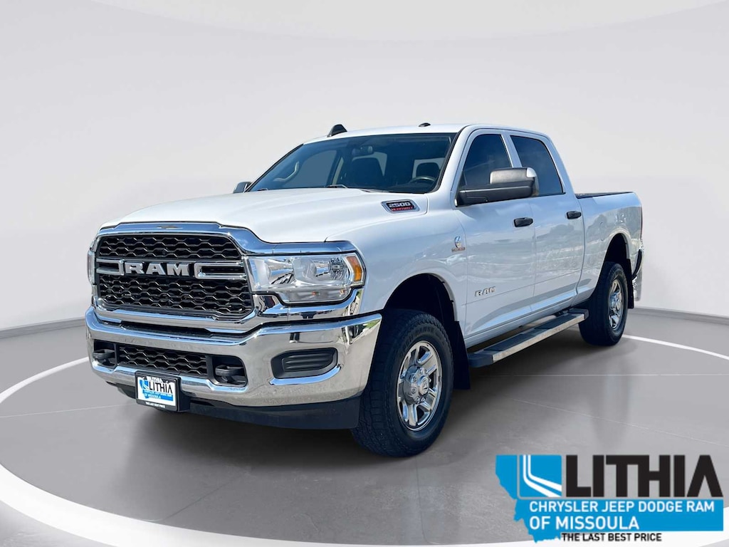 ENGINE: 6.7L I6 CUMMINS TURBO DIESEL Selective Catalytic Reduction (Urea), Dual 730 Amp Maintenance Free Batteries, Cummins Turbo Diesel Badge, Heavy Duty Engine Cooling, Tow Hooks, Diesel Exhaust Brake, Supplemental Heater, Front Bumper Sight Shields, Capless Fuel Fill w/o Discriminator, TRADESMAN LEVEL 2 EQUIPMENT GROUP SiriusXM Radio Service, SiriusXM Satellite Radio, Rear Window Defroster, For More Info, Call 800-643-2112, Rear Power Sliding Window, Carpet Floor Covering, CHROME APPEARANCE GROUP Bright Rear Bumper, Chrome Grille Surround, Matte Black Mesh Grille w/Chrome, 18 Steel Spare Wheel, Wheels: 18 x 8.0 Steel Chrome Clad, Tires: LT275/70R18E BSW AS, Bright Front Bumper, ANTI-SPIN DIFFERENTIAL REAR AXLE, POWER ADJUST & HEATED BLACK TOW MIRRORS Mirror Running Lights, Exterior Mirrors w/Supplemental Signals, Exterior Mirrors Courtesy Lamps, Trailer Tow Mirrors, TRANSMISSION: 6-SPEED AUTOMATIC (68RFE) Urethane Shift Control, BLACK, CLOTH 40/20/40 BENCH SEAT Front Armrest w/Cupholders, Manual Adjust 4-Way Front Passenger Seat. Ram Tradesman with Bright White Clearcoat exterior and Black interior features a Straight 6 Cylinder Engine with 370 HP at 2800 RPM*.